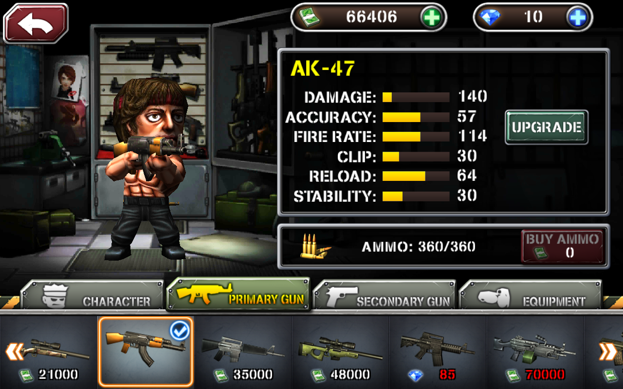 -No decorrer do nível acima, o jogador pode aumentar o poder de armas, estabilidade e velocidade, bem como escopo equipamento franco-atirador e lançador de granadas.